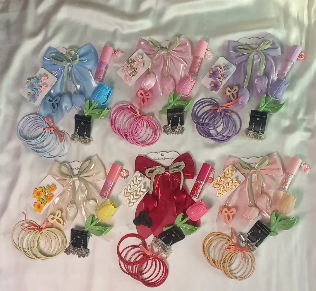 Celebrate in style with our Eid Special Bundle! Featuring colorful bangles, silk hair bows, traditional Jhumkas, and tinted lip gloss. Shop the perfect gift now.