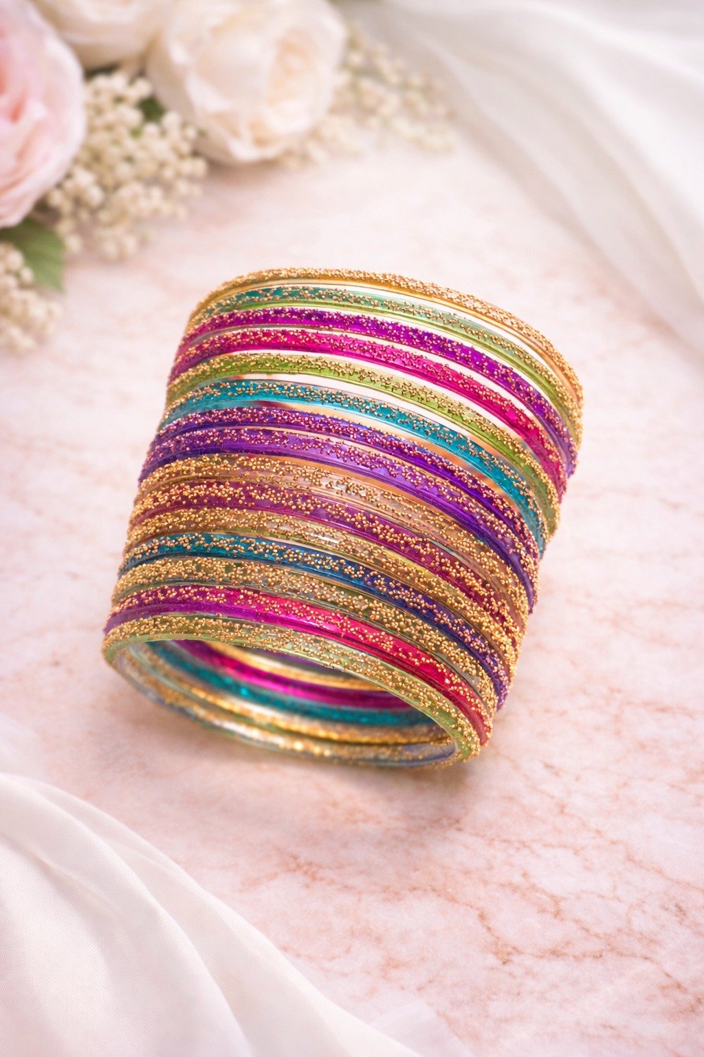 The Ultimate Sparkle: Radiant Gold-Dusted Glass Bangles
